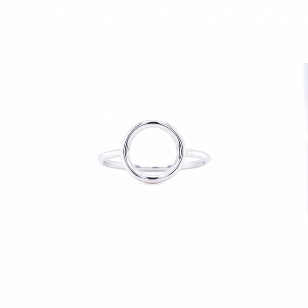 Minimalistický prsten z bílého 14 k zlata s motivem kruhu.